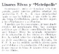 "Metrópolis" es la obra de un genio. He ahi una prueba: Un conjunto de hombres semidesnudos arrastran un bloque de piedra. No puede ser más sencillo. Las líneas rectas del paralelepípedo rolosal son hoscas, rígidas, y parecen talladas por la mano de un siglo. Este bloque da una sensación de fatal grandeza, de plúmbea eternidad, El destino debe ser eso mismo: un gran bloque de piedra de lineas recías que gravita sobre nuestros espiritus y los aplasta y tritira bajo su masa hosca y huraña. Jamás he visto a la humanidad tan magistralmente representada. Ese bloque que arrastran unos hombres agobiados por su peso, parece hablarnos de los dolores milenarios que la triste humanidad soporta; de la cierna lucha en que el hombre ha de verse zarandeado y maltrecho. Según el bloque avanxa, el azul del cielo desaparece; así desaparece también la esperanza cuando sobre nuestras almas avanza el cíclope de todos los dolores.