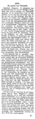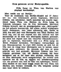 A very elaborate and mixed review of Metropolis as it was screened in the "Rembrandt Theater" in Amsterdam. It is intere...