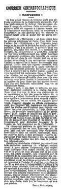 Review of Metropolis following the French release